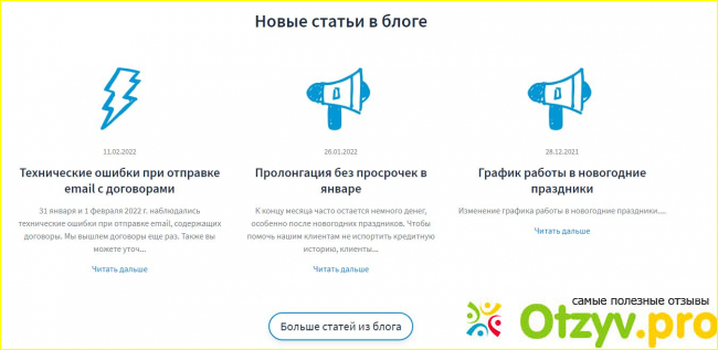 К определенным недостатком можно отнести, что займы людям с плохой кредитной историей они не выдают. Также здесь нет каких-либо бонусных программ, а в случае долгого невозвращения денег компания обращается к коллекторам.