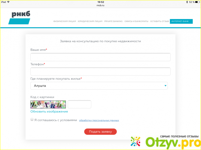 Если есть вопросы по оформлению ипотеки, то на официальном сайте интернет-банка РНКБ есть форма обратной связи. Специалисты реагируют на обращения клиентов быстро и дают грамотные и развёрнутые ответы.