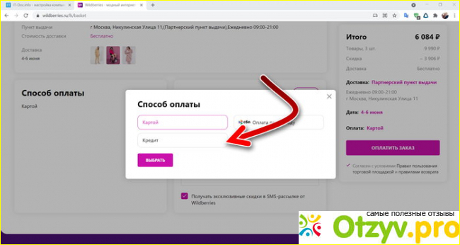 переходим в корзину и начинаем оформление товара (выбираем только фирменный пункт доставки, другие способы получения товара при оформлении кредита не подойдут)