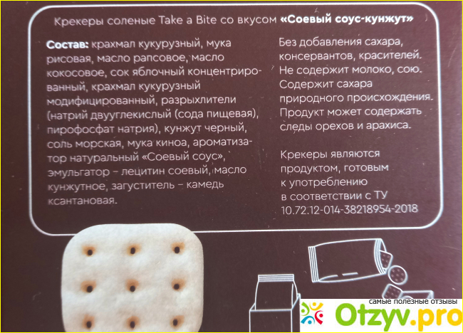 Люди с глютеновой энтеропатией меня поймут: часто очень, иногда просто нестерпимо, хочется мучного. Тогда я начинаю искать безглютеновые "вкусняшки" в интернет-магазинах. Так на "Озоне" нашла по названию очень вкусные крекеры от Take a Bite c соевым соусом и кунжутом.