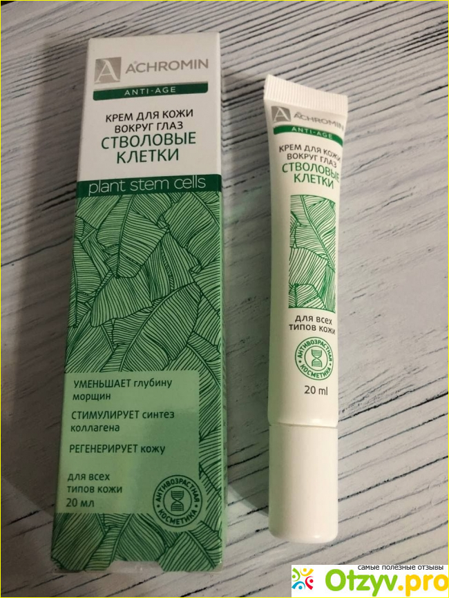 Крем Achromin Anti-age для кожи вокруг глаз со стволовыми клетками хорошо помогает бороться с первыми признаками старения.