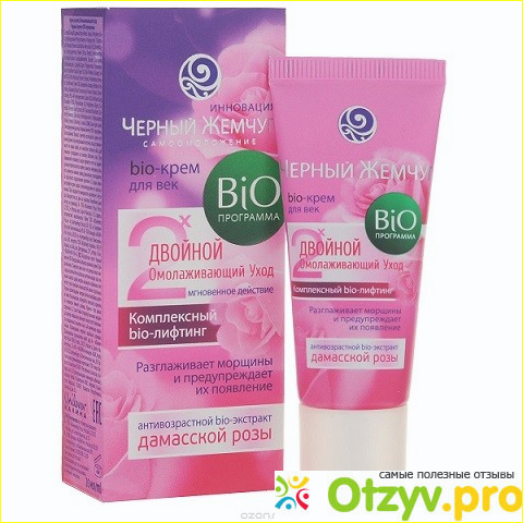 Продается крем в небольшой симпатичной коробочке розового цвета. На полке такое оформление не останется не замеченным. На лицевой стороне указаны сразу важнейшие характеристики этого средста, а именно: тройной омолаживающий эффект, что это BIO-программа, крем содержит в себе экстракт дамасской розы, средство разглаживает морщины и удалает темные круги под глазами.
