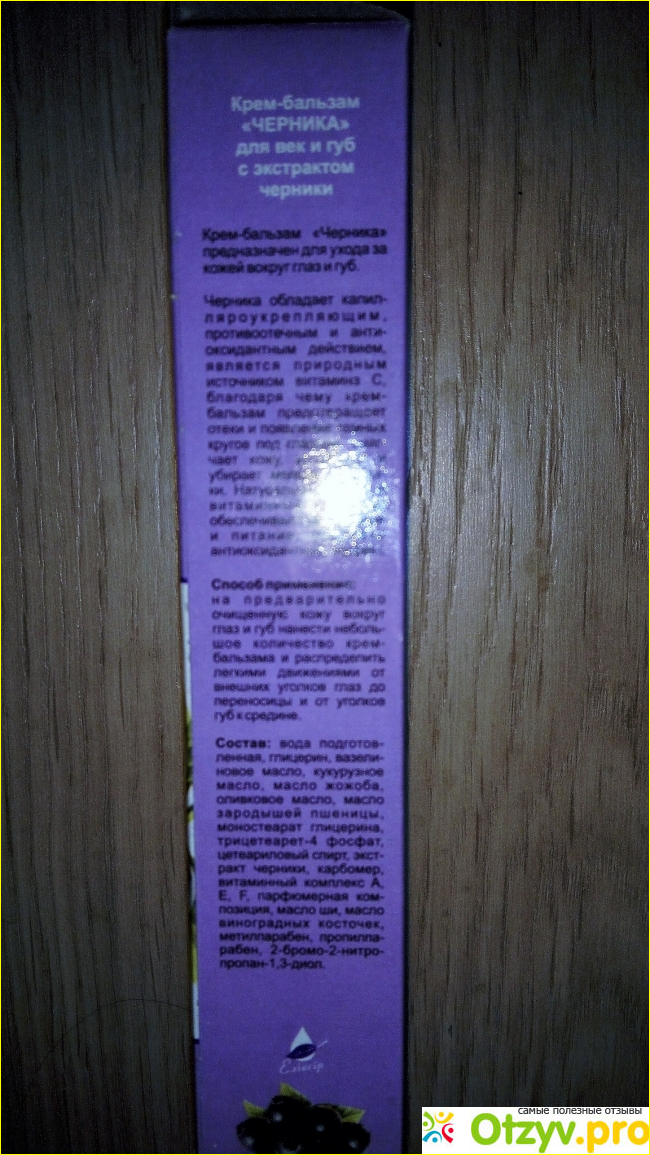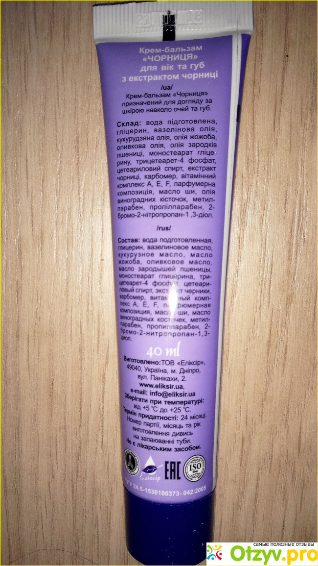 Предмет этого отзыва - крем-бальзам для губ и век "Черника", продукт компании Эликсир.