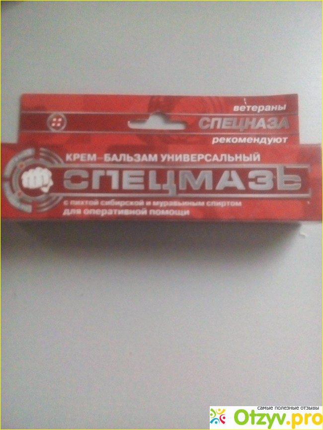 Увлажняет, глубоко проникая в кожу, смягчает ткани, придаёт им упругость и эластичность. Крем защищает кожу от повреждений, вызванными негативными факторами окружающей среды, такими как мороз, солнце, ветер. Я, например, пользуюсь мазью когда болит спина, очень хорошо помогает. Всем рекомендую. Кстати, цена совсем недорого. Мужу помогает когда руки мерзнут, Спецмазь согревает хорошо. Мазь помогает при насморке, нужно мазь намазать тонким слоем на крылья носа и буквально на следующий день насморк пройдёт. Состав мази:кокосовое масло, цетилстиариловый спирт, глицерин, касторовое масло, ПЭГ-400, полисорбат 80, карбопол 21, алое вера гель, ланолин, экстракт можжевельника, экстракт гвоздики, шаромикс, муравьиный спирт, экстракт подорожника, экстракт шалфея, эфирное масло пихты сибирской, эфирное масло эвкалипта, масло облепихи, экстракт каленлулы, феноксиэтанол, метилизотиазолин. Помогает когда только начинаешь заболевать, надо намазать мазью ноги, грудь, хорошо укрыться и быстренько все пройдёт. Замечательная мазь, рекомендую. Очень довольна, что нашла такую хорошую мазь. Буду теперь пользоваться только этой мазью для всех случаев жизни. Очень поразила цена, так дёшево и так эффективно. Мазь ,, Спецмазь" можно купить в любой аптеке, доступно. Даже помогает избавиться от прыщей и и это меня очень радует. Вот недавно мой дядя ноги сильно отморозил, я ему посоветовала эту мазь, он мазал свои ноги где- то дня 3 и о чудо, волдыри начали пропадать и ранки заживать, короче теперь всей семьёй пользуемся и вам советуем. Конечно есть противопоказания, может быть аллергическая реакция. Надо сначала попробовать намазать на локоток, если будут покраснения, тогда лучше не использовать, значит у вас на какой то продукт из состава аллергия и вам мазь не подходит. Ну это редко, когда она кому- то не подходит. Так что пользуйтесь.