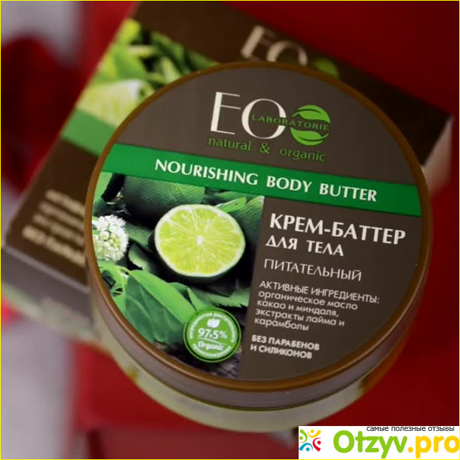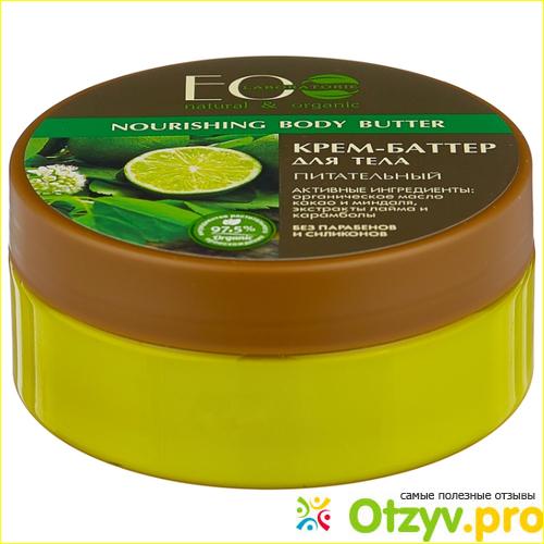 Состав шикарный-натуральные масла какао, миндаля, лайма, фисташки. есть экстракты трав, глицерин.