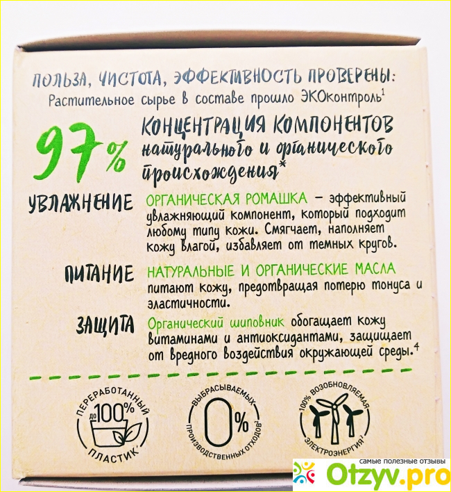 Так же на упаковке указано, что у крема на 97% натуральный состав.