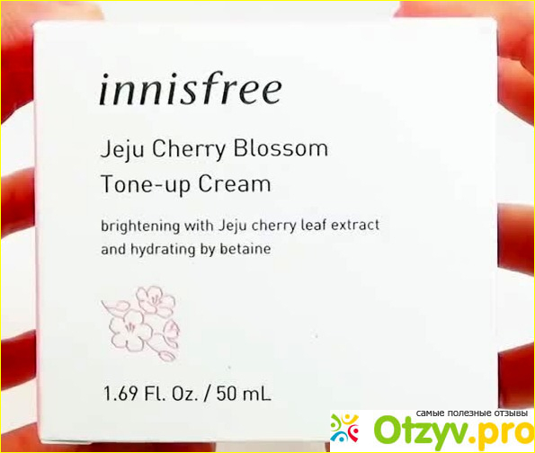 Сделан на основе экстракта вишневых цветов острова Чеджу, поэтому имеет соответствующее оформление коробки
