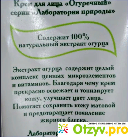 В рейтинге кремов с присутствием огуречной составляющей, крем "Лаборатория природы"занимает одно из первых средств.