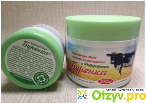 Поначалу некоторых потребителей смущает именно название крема - " Буренка", поэтому некоторые воспринимают его как специализированное средство по уходу за кожей животных. И нарисованная на баночке симпатичная корова только укрепляет их сомнения. Однако можно успокоить таких, слишком щепетильных и мнительных представительниц прекрасной половины человечества - крем " Буренка" предназначен для использования людьми, и не представляет ни малейшей опасности, а наоборот - приносит ощутимую пользу.