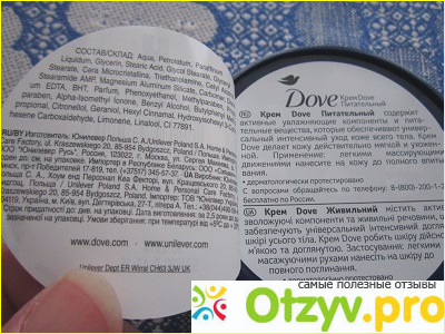 Некоторую информацию от производителя о назначении и составе крема Dove можно почитать, если отвернуть бумажную наклейку.