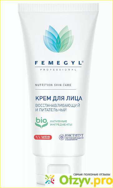 Ими оказалась серия от Femegyl. Первое, что я купила на пробу "Крем восстанавливающий и питательный", в объеме 30 мл. Упаковка - обычная пластиковая туба, тугая крышка, на отверстие защитная мембрана. Крем расходуется экономно, количества с ноготь-мизинец мне хватает, чтобы нанести на лицо. Крем легкой структуры, он очень легко наносится, быстро впитывается и, что особенно порадовало, не оставляет жирного слоя на лице.