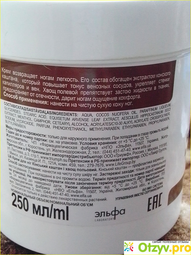 Я использовала этот крем неоднократно. Средство действительно устраняет тянущие боли в ногах помогает снять отёки, которые летом очень часто мешают легко ходить, особенно ближе к вечеру.