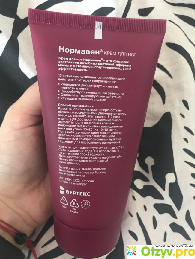 Мне знакомая подсказала, что можно использовать Нормавен, в этом креме нет никакой химии, только натуральные компоненты, конский каштан, ментол, брусника, витамин С и другие. Я стала мазать ноги этим кремом два раза в день и мне стало намного легче. Также у крема очень приятный запах, он быстро впитывается и приятно охлаждает.