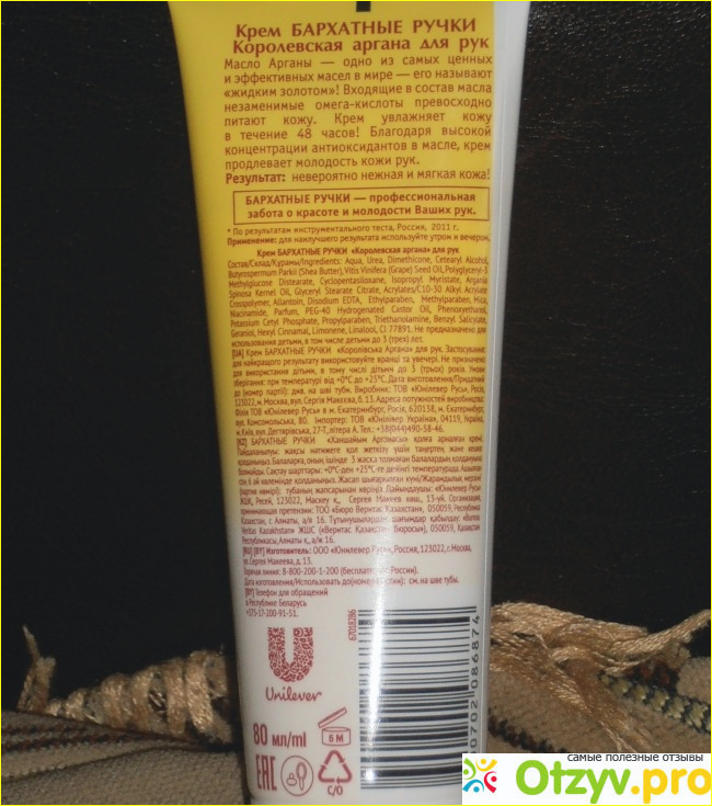 Одной из моих любимых марок является российский бренд Бархатные ручки, периодически чередую разные кремчики их производства. Сейчас пользуюсь "Королевской арганой". По сравнению с просто увлажняющим кремом, аргановый немного другой по текстуре и значительно лучше питает. Запах приятный и нежный, он остается на ручках после нанесения и поднимает настроение. В составе есть натуральные добавки и в частности полезнейшее масло арганы.