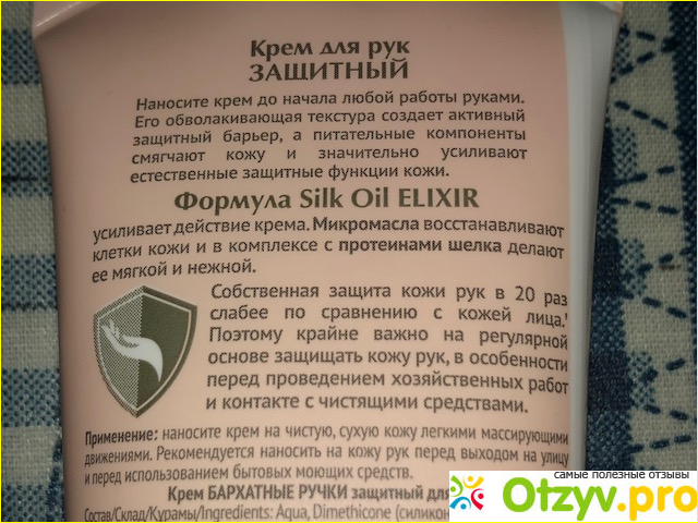 А в целом этот крем вполне оправдывает свое название «Бархатные ручки». Он не только великолепно защищает кожу рук, но и бережно ухаживает за ней, делая ваши ручки гладкими, ухоженными и бархатистыми.