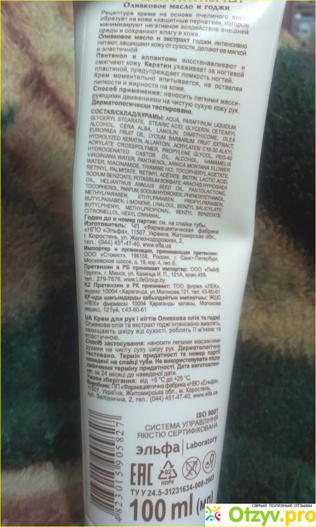 Изготовлен крем по Ту, производель Украина- изготовитель: ЧП " Фармацефтическая Фабрика" " НПО " Эльфа". Крем густой консистенции, с приятным, не резким ароматом, быстро впитывается.