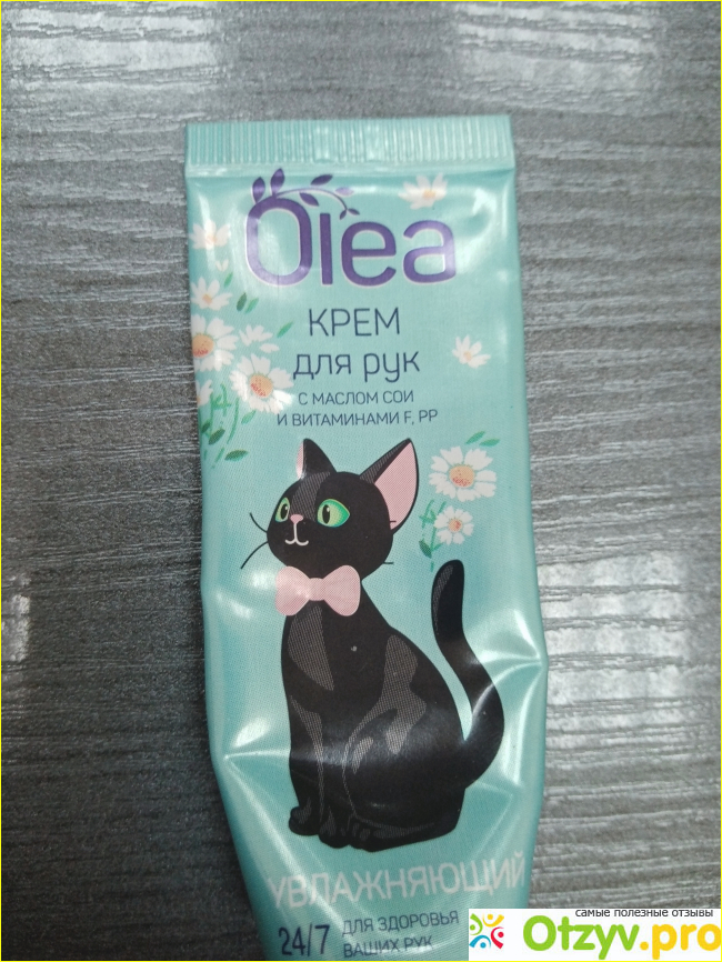 Крем от Olea мы купили с дочерью как-то в магните. Точнее, это был набор кремов, состоящий из трех штук. Три разных крема для рук, Объединенные одной торговой маркой и дизайном, на тюбике крема изображена чудесная кошечка.