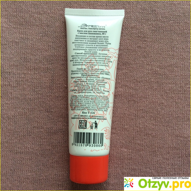На упаковке присутствует необходимая информация о воздействии крема, его составе, информация о производителе, которая может пригодиться покупателю. Туба закручивается обыкновенной крышечкой, под которой находится стандартного вида дозатор.