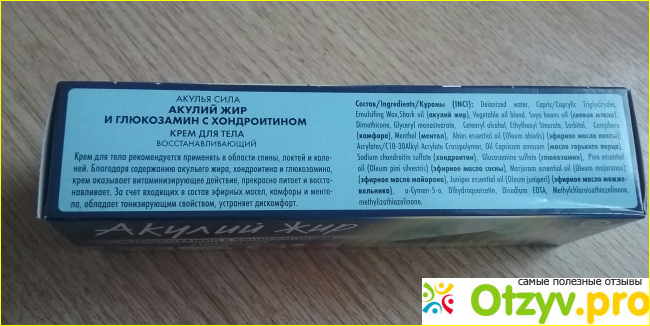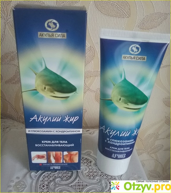 Однажды, поехав в г. Рузу, в одной из аптек, я для мужа приобрела крем для тела восстанавливающий "Акулий жир" и глюкозамин с хондроитином, так как у него кроме коленей болела еще и спина.