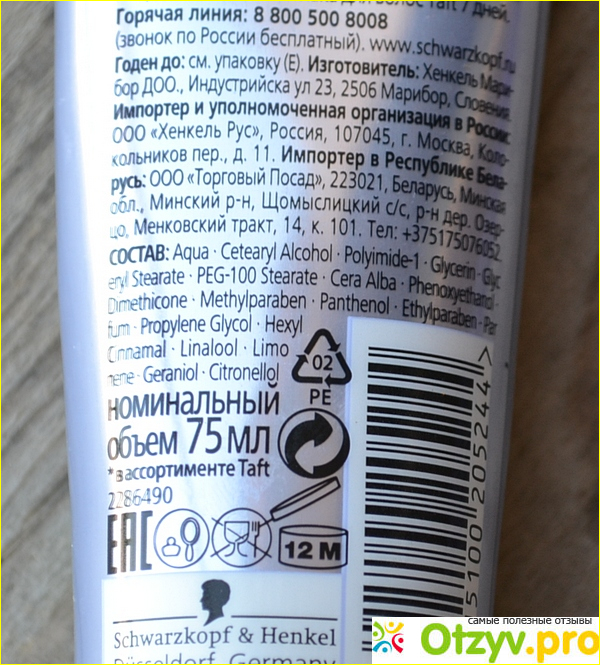 Упаковка крема для укладки Taft "7 дней объем" выполнена в виде мягкого серебристого тюбика, что очень удобно.