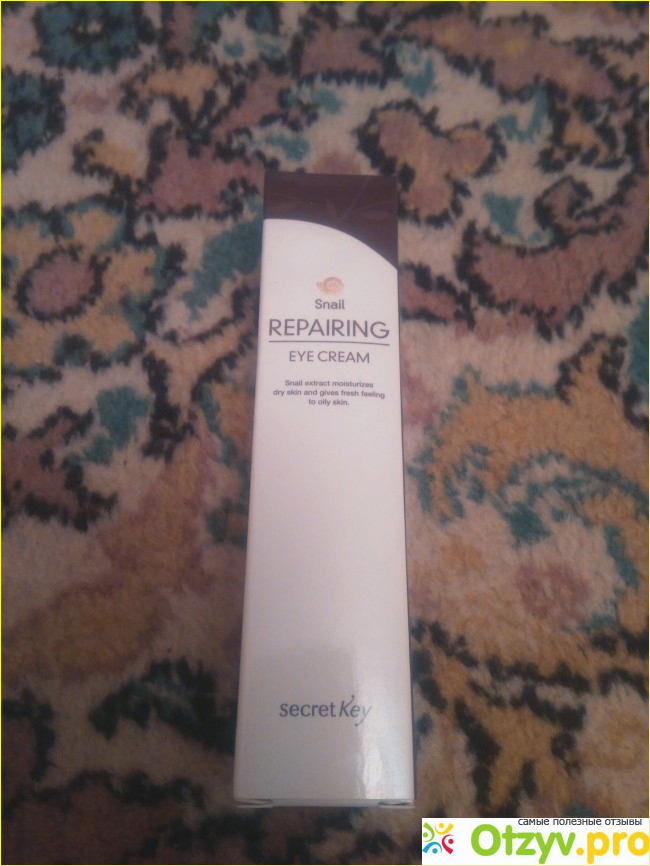 Заказывала себе крем для век Secret key Snail Repairing Eye Cream. Пришёл примерно за месяц. Вот так выглядит коробочка, в которой находился крем.