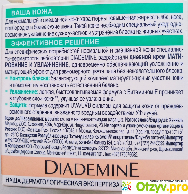 Крем для лица Diademine матирование и увлажнение уже более двух месяцев помогает мне бороться с сухостью и раздражением кожи, которые возникают каждую зиму.
