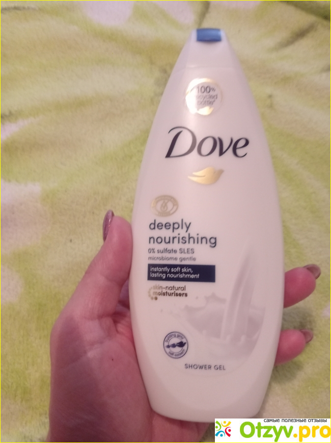 Не буду останавливаться на составе, каждый умеет читать то, что пишут сзади на упаковке. Поделюсь ощущениями. Пользуюсь гелями этой марки на постоянной основе. Мне они очень нравятся. Сейчас у меня в использовании именно такой гель. Отлично пенится, не стягивает кожу, а действительно увлажняет ее. Удобно то, что его начали выпускать и в больших бутылках. Если вас раздражают резкие запахи, можно не боятся. Аромат нежный, тонкий, надолго остаётся на теле. После душа замечательное ощущение чистоты и лёгкости тела. Если кто-то потом пользуется лосьоном для тела, то после Dove не нужно дополнительно увлажнять кожу Из всего, что я пробовала Dove подходит больше всего.