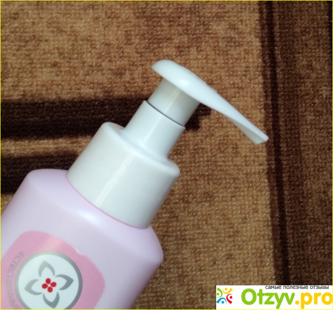 На пластиковом флаконе есть наклейка, дублирующая основную информацию с коробки. Нажимая на дозатор выходит необходимое количество средства на раз применения.