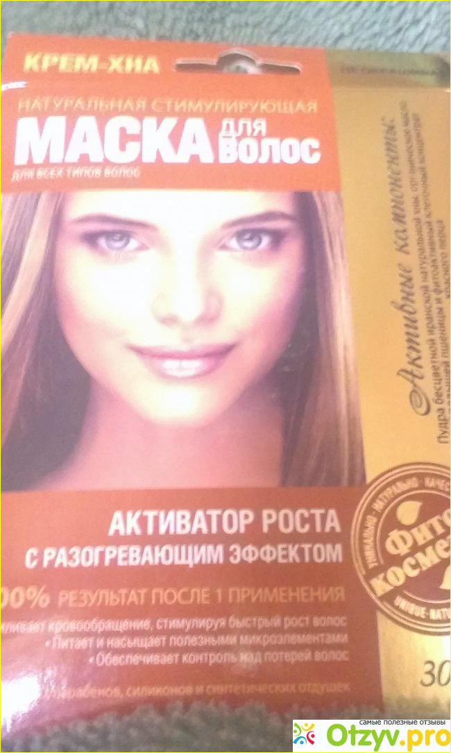 Яркий стильный формат маски для волос с многообещающими надписями с первого раза на 100% преобразить волосы и другие маркетинговые штучки: Активатор роста- кто же не хочет быстро отрастить шикарную длину волос? Вообщем на упаковкой с крем-хной поработали отлично, она привлекает внимание к себе потенциального покупателя и даже, если не во всё веришь , то подсознательно всё же ожидаешь заявленный результат от применения средства.
