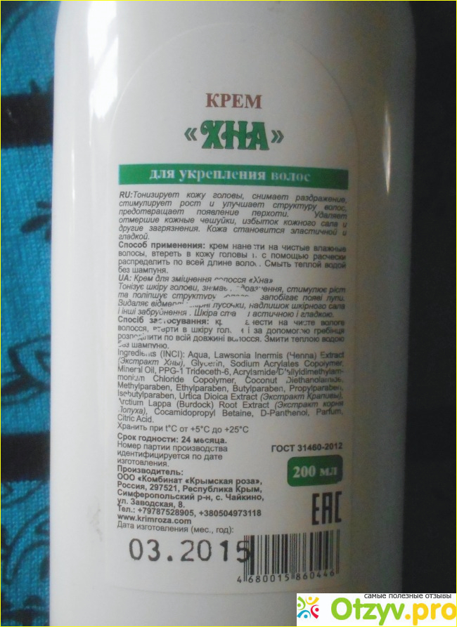 Пользовалась я кремом для укрепления волос Крымская роза Хна пару месяцев, эффект заметила, когда использовала целую упаковку- волосы стали выпадать меньше, укрепились немного, поэтому и купила его повторно. Смывать бальзам можно без шампуня- обычной теплой водой. Кроме укрепления крем немного распутывает волосы, чуть-чуть облегчает расчесывание. Считаю, что он заслуживает хорошей оценки, к покупке рекомендую!