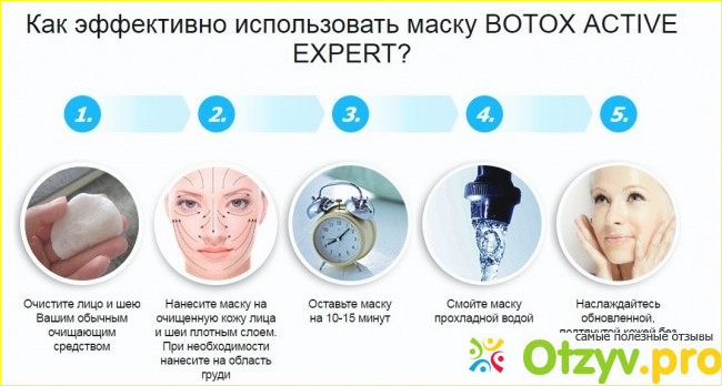Прежде чем использовать средство, стоит ознакомиться с инструкцией, поскольку курс применения средства составляет 30 дней и все эти дни, стоит регулярно применять средство. Наносить его лучше за пару часов до сна, на предварительно очищенную кожу. После этого, действительно получиться добиться невероятного эффекта. Кожа станет молодой и красивой, вы помолодеете более чем на 10 лет, станете сиять красотой. Поэтому, никаких сомнений нет в том, чтобы не рекомендовать этот невероятный вариант для омолаживания как маска Ботокс Акттив Эксперт.