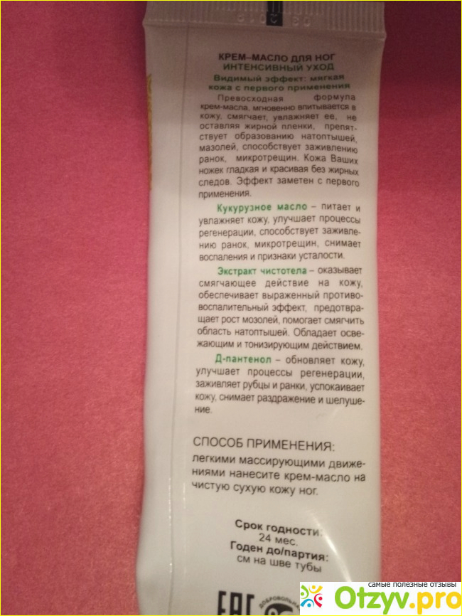 Если перевернуть тюбик, то можно ознакомится со способом применения и действием крем-масла, которое обещает нам производитель
