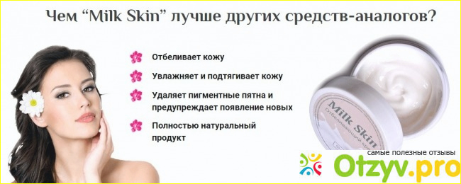 Милк скинг - это достаточно эффективный крем, который в первую очередь предназначен для того, чтобы отбеливать кожу и уничтожать массу недостатков на ней. Крем способствует быстрому устранению веснушек, помогает избавиться от пигментации, помогает устранить угревое высыпание и устранить последствие акне. Этот крем включает в себя исключительно натуральные компоненты, можно вполне его считать натуральным, органическим. А этот факт означает только одно, данный крем не способен навредить коже и прекрасно за ней ухаживает, оказывая благоприятное воздействие на кожу. Поэтому, крем не включает в свои свойства вреда и противопоказаний, крем прекрасно ухаживает за кожей и делает ее идеальной.