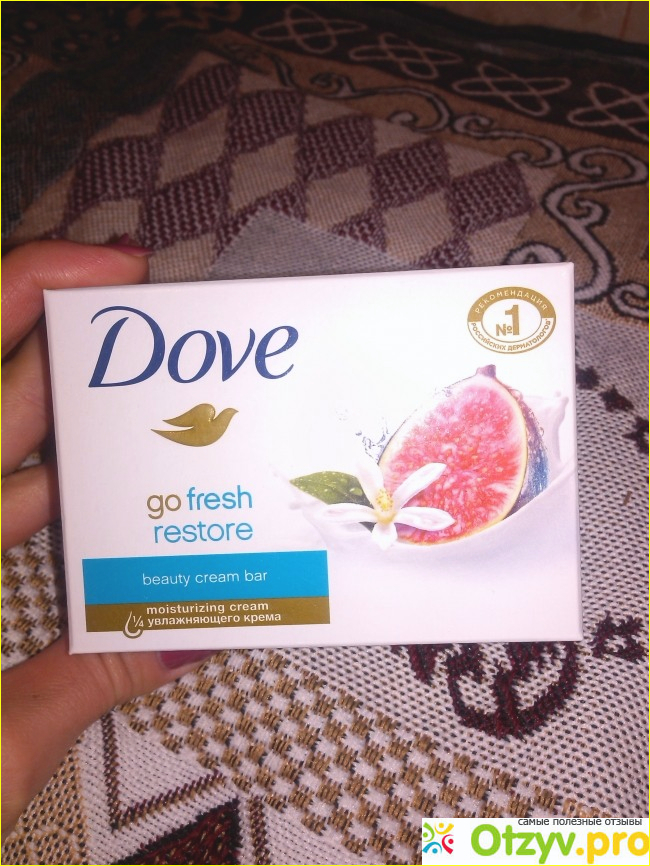 Мыло имеет удобную форму, узнаваемо по изображению птички. Последняя покупку - мыло Дав с ароматом инжира и цветков апельсина.