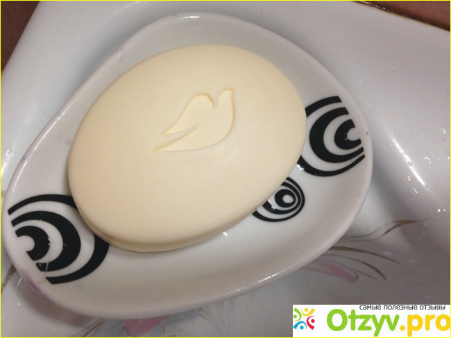 Мыло овальной формы, на котором есть изображение голубки, которая у меня вызывает ассоциации с нежностью и домашним теплом.