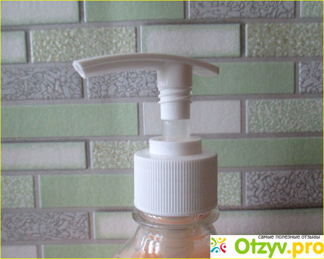 Здесь дозатор очень удобный, носик длинный, поэтому мыло не капает на бутылку.