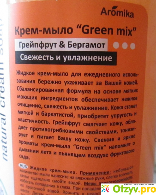 Кожу рук не сушит. Ещё мне понравилось, что в инструкции по применению не написано, что мыло «только для мытья рук». Сказано, что оно смягчает кожу, обладает противомикробными свойствами, тонизирует и питает.