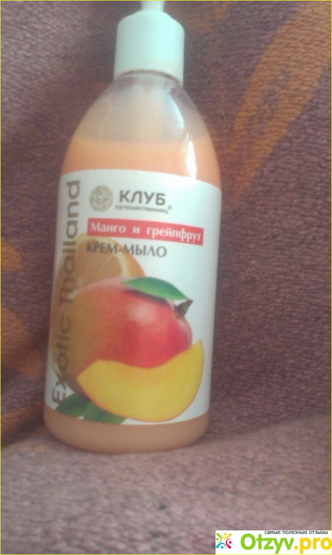 Всем моим читателям отзыва доброго времени суток. Хочу вам сегодня рассказать об очередном крем- мыле, которое я приобрела и попробовала. На этот раз это жидкое крем- мыло Манго и грейфрукт ООО" Маграв", серия " клуб путешественниц".