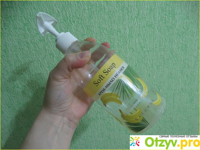 Крем-мыло нежное Soft Soap "Банановое суфле" было куплено мною в магазине "Все по 39". Люблю покупать для своей семью мыло для рук в подобных упаковках, поэтому обратила внимание на этот вариант. Мыло представлено в упаковке с удобным дозатором в объеме 530 мл.