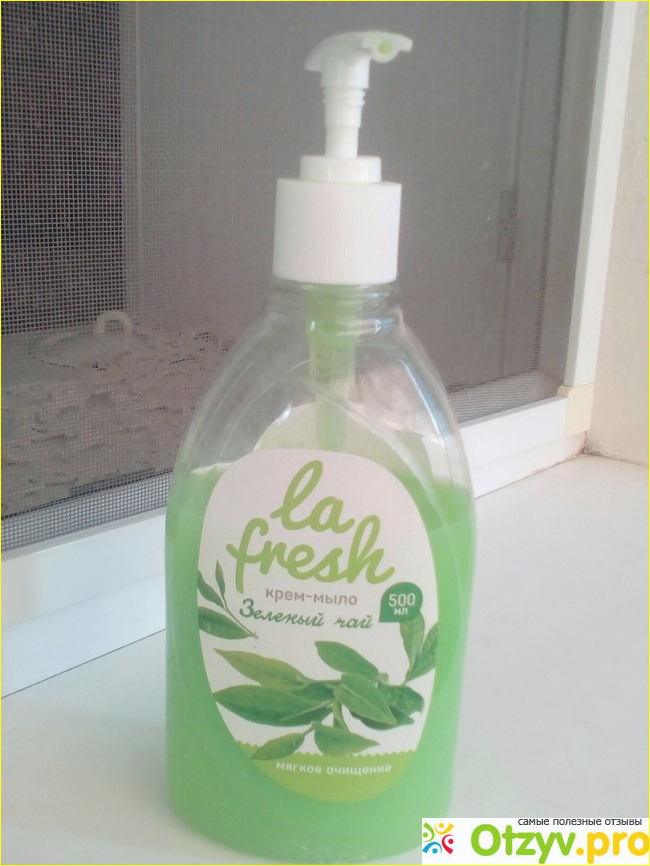В последний раз использовала жидкое крем-мыло от фирмы La Fresh Зеленый чай. Бутылка была большая, ее объем 500 мл, а цена всего около 40 рублей!! Копейки!