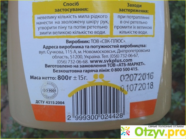 Мыло произведено по заказу АТБ-маркет в Новомосковске(Украина).