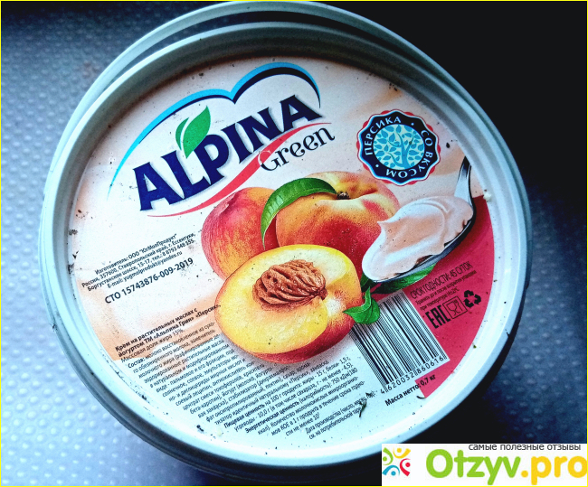 Ну и ладно! Пусть будет на растительных маслах. Стоит около 150 рублей. Весит 700 грамм. Изготовлен продукт про СТО. Где изготовлен и что в составе, в магазине прочитать не смогла. Прочитать без лупы можно только то, что со вкусом персика продукт. Впрочем, и дома мало что прочитать смогла. Большую часть крышки занимает красивая картинка.