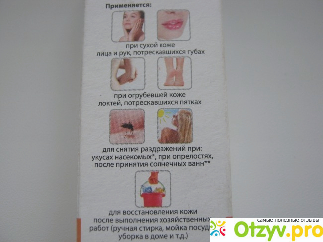 Состав натуральный, одни масла и пчелиный воск. Здесь же на коробочке можно найти и способ применения и при каких повреждениях кожи крем будет наиболее эффективен