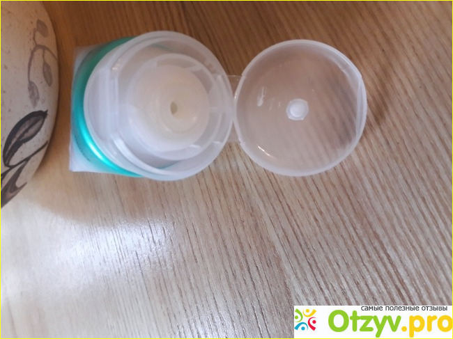 У тубы откидная крышка из твердого пластика, которая хорошо открывается. Крышка имеет ровную и гладкую поверхность, можно на нее ставить. У тубы имеется небольшое отверстие, через которую удобно дозировать количество необходимого крема.