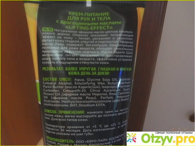 Крем очень ароматный для меня, плотный - как топлёное масло. И вот наверное все это делает возможным обещанный результат - кожа более упругая, гладкая и мягкая. Гладкость кожи я подтверждаю - но это наверное как и после любого крема.