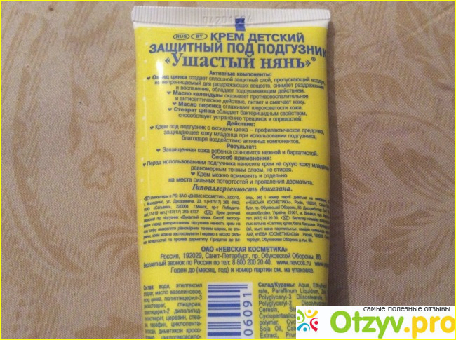 То есть пользуемся нечасто, но всегда очень эффективно. Помогает от раздражений очень хорошо, эффект заметен с первого раза. Хорошо снимает раздражение, видимо, благодаря оксиду цинка, входящего в состав крема, смягчает кожу, обладает заживляющим действием благодаря экстракту календулы. Крем по консистенции густой. Втирать его приходится долго, но зато и защищает он долго. Крем продается в тюбике, что очень удобно, не надо лезть рукой в банку с кремом. Крем можно использовать с первых дней жизни малыша, он не вызывает аллергических реакций. Моей малышке очень нравится сам тюбик, прям радуется когда его достаю. Дизайн и правда прикольный. Тюбик ярко желтый в белый горошек. Ну а если еще учесть его не высокую стоимость, то тем более можно его смело рекомендовать. В итоге, крем мне понравился. Рекомендую.