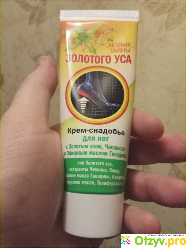 Пока ждал день приема врача пошел в аптеку, посоветовали этот крем. Мажу им пятый месяц, эффекта ноль. Вообще никакого! Врач посмеялся над таким лекарством и прописал уколы в пятку. Но я продолжал мазать, уколы то всегда успею. Пошел к другому врачу, в платную клинику. Он посмеялся над этим кремом, сказал, хуже не будет, но пользы тоже. Пошел в другую поликлинику, благо сейчас можно записаться в любой район через интернет. Результат тот же - не тратьте деньги на бесполезный товар! Короче золотой ус это фуфло. Сделал три укола в пятку и стал ходить. Не покупайте этот крем. Хотя, для смягчения сухой кожи пойдет. Запах мне тоже нравится. Хотя жена считает эту вонь тошнотворной. На любителя.