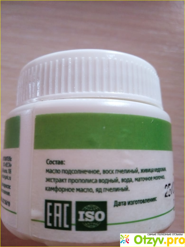 В креме отсутствуют искусственные консерванты, вместо них природные антисептики — пчелиный воск и прополис.