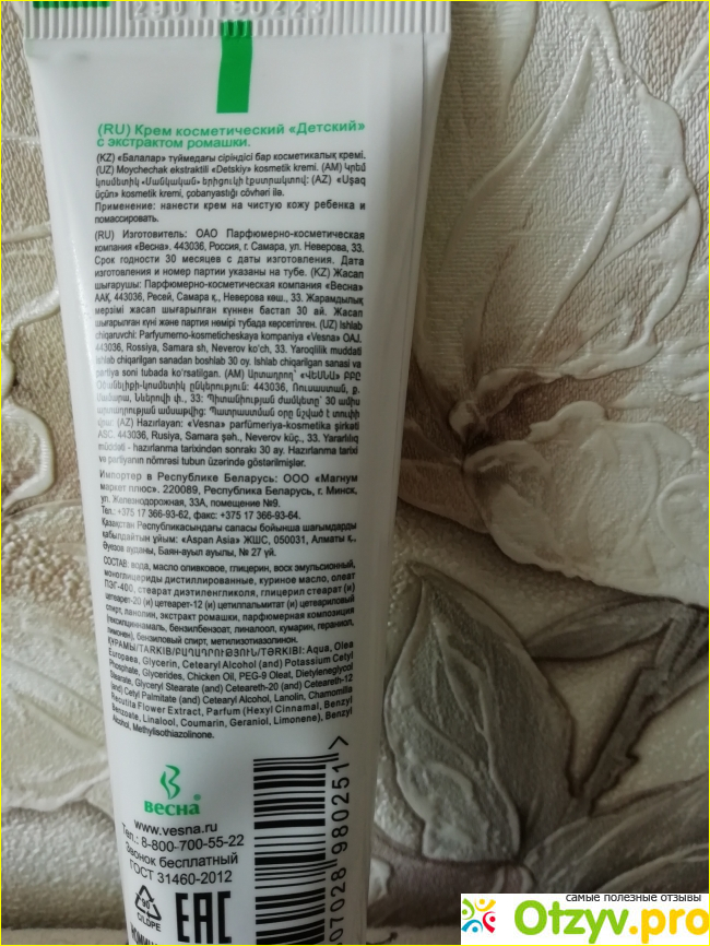 Подведем итог. Ни одного минуса в креме "Детский", производителя "Весна", я не обнаружила. Зато посмотрите сколько плюсов:
