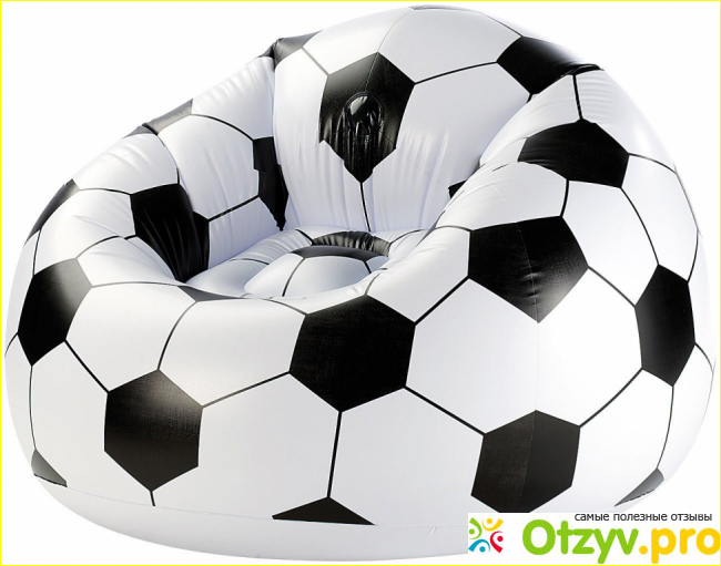 И в тот же вечер у нас в доме красовалось оригинальное кресло, которое по внешнему виду похоже на футбольный мяч. Называется же это кресло Кресло-мяч надувное Bestway 75010.